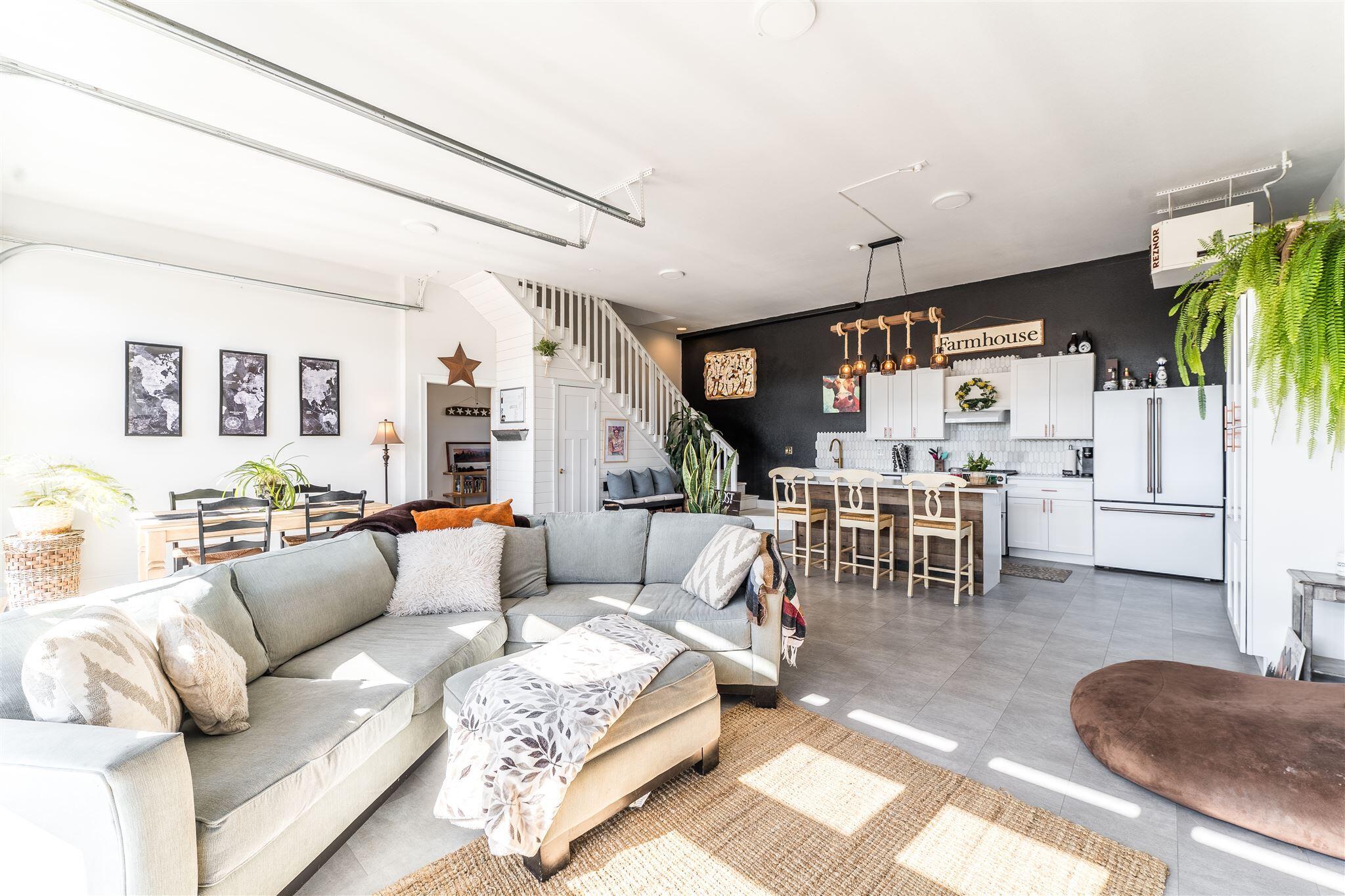 Beautifully remodeled modern farmhouse barndominium on 5 fully fenced & gated acres, blending rural charm with modern luxury. Permitted dwelling offers open-concept living with new kitchen featuring solid wood cabinets, matte quartz counters, GE Cafe appliances, tile backsplash & large island. Great room boasts double roll-up doors for seamless indoor-outdoor living. Main level includes mud room, laundry & updated bath with new tub, vanity, LVP flooring & tankless water heater. Upstairs offers spacious primary, additional bedroom & landing. Designer touches include shiplap & fresh interior/exterior paint. Barn includes 2 stalls, tack room, trailer bay, upstairs bunk room & bedroom space. Upgrades: new ductless mini-split, fire pit, private well & RV hookups. Power, water connections & septic sized for a larger home--live in the barndo while you build your dream residence! Potential to add an ADU or convert barndo to ADU (buyer to do due diligence).